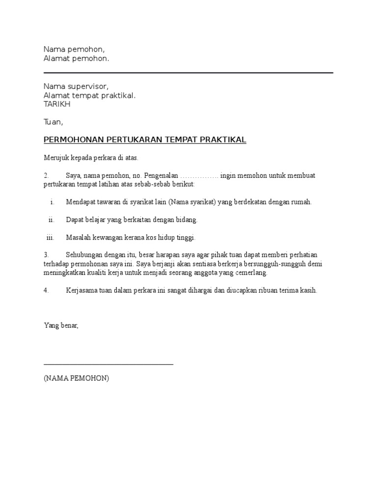 Permohonan Pertukaran Tempat Praktikal Pdf