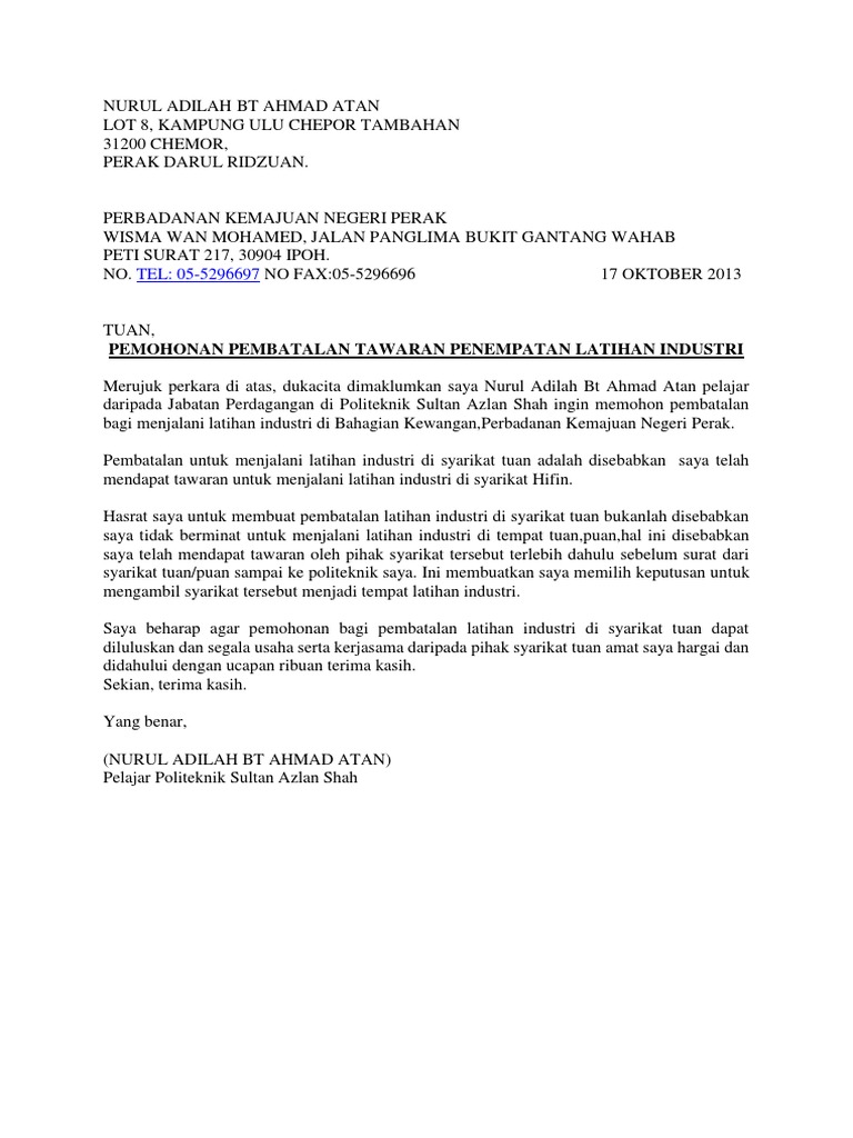 Surat Pembatalan Latihan Praktikal Pdf